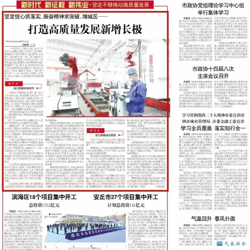 重磅!2月16日,《潍坊日报》头版头条专栏刊发《坚定信心抓落实,振奋精神求突破,潍城区——打造高质量发展新增长极》重头稿件,对潍城区加快重点项目建设,打造高质量发展新增长极进行了深度解读。